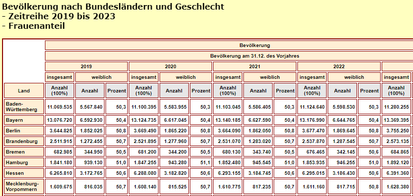 Die Ausgabe der Tabellen kann wiederum in verschiedenen Formaten erfolgen: HTML, PDF oder Excel. Durch Klick auf das gewünschte Tabellenformat wird die Tabelle geladen (Abb. 2.14).