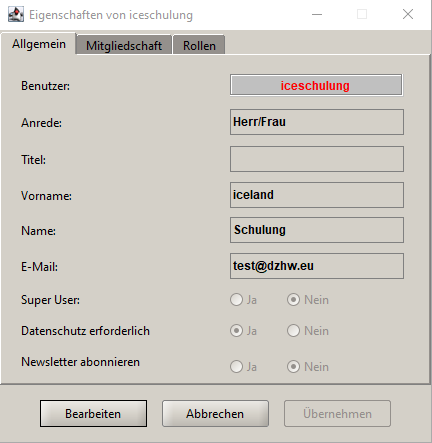 Im Registerblatt Mitgliedschaft des Dialogfeldes Eigenschaften kann die Gruppenzugehörigkeit eingesehen und verändert werden. Die Rollen von Benutzer*innen können im Registerblatt Rollen des Dialogs Eigenschaften eingesehen und verändert werden.