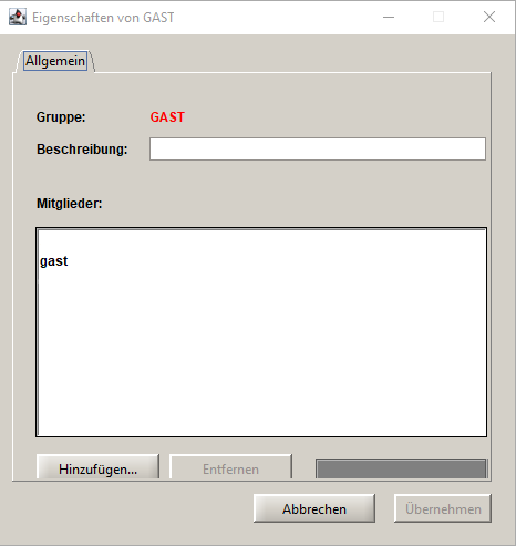 Entsprechend wird bei Änderungen der Gruppenzusammensetzung vorgegangen: Klicken Sie mit der linken Maustaste den Baumknoten Gruppen an, dann erscheint im Feld rechts die Liste der vorhandenen Gruppen; klicken Sie daraufhin mit der rechten Maustaste die gewünschte Gruppe an, dann öffnet sich ein Popup-Menü. Wählen Sie hier den Punkt Mitglied hinzufügen und Sie können in folgendem Dialogfeld Eigenschaften von... sehen, welche Mitglieder die jeweilige Gruppe besitzt sowie neue Mitglieder hinzufügen bzw. entfernen (Abb. 2.26). Mit Hilfe des Popup-Menü-Punktes Umbenennen können Sie außerdem den Gruppennamen ändern.